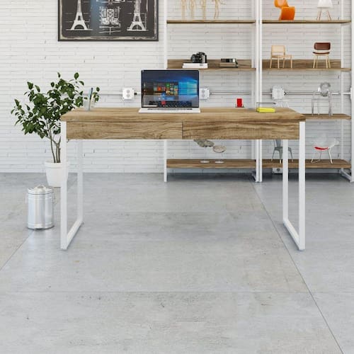 A Linha Kuadra tem seu design com inspiração no estilo industrial, que remete muito a decoração usada nos Lofts das grandes metrópoles nos anos 60 e 70. Harmonizando o metal e os tons de madeira, foram projetados móveis versáteis e com estilo, que podem compor ambientes flexíveis cheios de personalidade, perfeitos para você decorar sua casa ou seu trabalho, tendo um resultado que caminha do estilo rústico ao moderno. Acabamento dos Pés: Pintura Acompanha Manual de Instalação: Sim Ambiente Principal: Escritório Complexidade da Montagem: Média: pode ser montado por mais de uma pessoa e/ou necessite de maior conhecimento para montagem Cor: Carvalho / Est.Branca Cor da Base: Branco Cor do Produto: Carvalho / Est.Branca Cor do Tampo: Marrom Cor Interna: Carvalho Escala de Brilho: Fosco Espessura do Tampo: 30 mm Formato: Retangular Gaveta com Chave: Não Itens Inclusos: 1 Mesa Manual de Montagem e Instalação: https://cdn2.madeiramadeira.com.br/atributo/compace-dalex/1713967-mesa-kuadra-com-02-gavetas.pdf Material da Estrutura: Aço Material do Puxador da Gaveta: MDP Material do Tampo: MDP Material dos Pés: Aço Material Principal: MDP Necessita Montagem: Sim Origem do Produto: Nacional Pés com Regulagem de Altura: Sim Peso: 23,61 kg Possui Passa Cabos: Não Possui Portas: Não Possui Prateleiras: Não Possui Suporte para Teclado: Não Quantidade de Gavetas: 02 Gavetas Recomendações de Uso, Manutenção e Limpeza: Para a limpeza, utilize flanela seca ou pano macio levemente umedecido em água. Utilize um pano seco em seguida. Evite contato com produtos químicos (solventes, thinner, acetona, etc) e não utilize nenhum tipo de esponja de aço. Sapatas Niveladoras: Sim Sistema de Montagem: Parafusos, minifix, cavilha, corrediça, bucha e sapatas niveladoras Suporta Até (kg): 40 kg Tipo de Corrediça da Gaveta: Metálica Simples