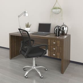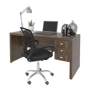 Mesa Escritório Tecnomobili ME4113, possui 3 gavetas que são espaçosas para armazenar documento e/ou objetos, sua montagem pode ser reversível, material em MDP, acabamento em BP, costas na cor do móvel.