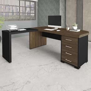 Seu tampo em tamburato de 50mm apresenta bordas curvas, proporcionando um visual moderno e elegante ao seu espaço de trabalho. Além disso, as quatro gavetas contam com corrediças telescópicas que garantem um deslize suave e silencioso, ao passo que oferecem amplo espaço para armazenar todos os seus itens essenciais do dia a dia - ah, e possui chave para maior . Para completar, a mesa extensora lateral, garante um design de uma mesa em L, otimizando a bancada de trabalho e deixando a sua rotina laboral muito mais produtiva.