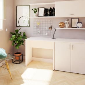 A Coleção Corp organiza qualquer espaço, desde um Home Office até um escritório corporativo. Feito com materiais resistentes e de qualidade, é a melhor opção para trabalhar ou estudar de forma harmoniosa. Disponível em diversas composições de cores para decorar seu ambiente. E vale lembrar que são feitos com material que respeitam o meio ambiente e as normas técnicas de ergonomia. Toda coleção de produtos da Bramov Brasil Móveis são perfeitas para ambientes residenciais, corporativos e executivos! A Mesa tem espessura do tampo de 25mm e pés com espessura de 25mm. Produto Montado: Sim Acabamento dos Pés: Melamínico Altura dos Pés: 75 cm Ambiente Principal: Escritório codigo_ean: 7908388135846 Complexidade da Montagem: Baixa: pode ser montado por uma pessoa sozinha Cor: Branca Cor do Produto: Branca Cor do Tampo: Branco Cor Interna: Branco Dobrável: Não Escala de Brilho: Fosco Espessura do Tampo: 25 mm Formato: Retangular Gaveta com Chave: Não Informações Complementares: Produzido com Chapa da Arauco e Eucatex, empresas que respeitam o meio ambiente. Itens Inclusos: 1 Mesa, Ferragens e Manual de Montagem Linha ou Coleção: Corp 25 Manual de Montagem e Instalação: https://product-hub-prd.madeiramadeira.com.br/619659/documents/913113d0-eec7-4964-a013-0460b505850b8fd887f4608651merecpmanual.pdf Material Principal: MDF Necessita Montagem: Sim Origem do Produto: Nacional Pés Reguláveis: Não Peso: 20 kg Possui Passa Cabos: Não Possui Pés: 02 Possui Porta Objetos: Não Possui Portas: Não Possui Prateleiras: Não Possui Suporte para Teclado: Não Recomendações de Uso, Manutenção e Limpeza: Limpar apenas com pano macio levemente umedecido. Sapatas Niveladoras: Sim Sistema de Montagem: Parafusos e Minifix Suporta Até (kg): 30 kg Ean: 7908388135846