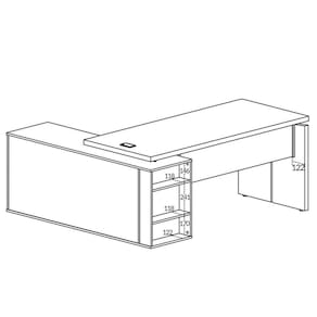 Características da Mesa para Escritório Diretor com Porta de Correr e Nichos: - Tampo e lateral da mesa em Tamburato 37mm com fita de borda ABS 1mm de espessura; - Estrutura da mesa e do balcão em MDP 15mm com fita de borda ABS 0,45mm de espessura; - Porta de correr com puxador de metal cromado; - Kit roldanas e trilhos para porta de correr em metal; - Acompanha caixa de conectividade com 2 tomadas 10A e encaixe para conector RJ45; - Traseira revestida; - 7 sapatas plásticas com regulagem de altura; - Montagem para lado direiro ou esquerdo; - Não acompanha objetos decorativos; - Montagem por conta do comprador;