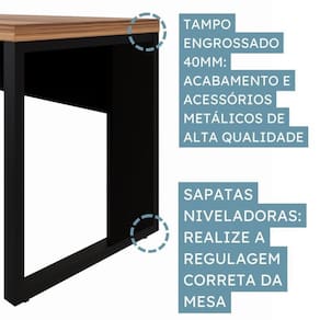 Mesa retangular pé quadro: Tampo confeccionado em chapa de média densidade MDP
