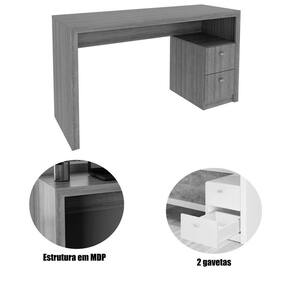 Características da Mesa para Escritório Escrivaninha 2 Gavetas: - Estrutura em MDP; - Acabamento em BP; - 2 gavetas; - Costas na cor do móvel; - Puxadores em plástico; - Suporta até 15kg no tampo e 3kg cada gaveta; - Não acompanha objetos decorativos; - Para uma limpeza mais efetiva, utilizar apenas pano macio umedecido e sabão neutro. Não utilizar produtos abrasivos; - Montagem por conta do comprador;