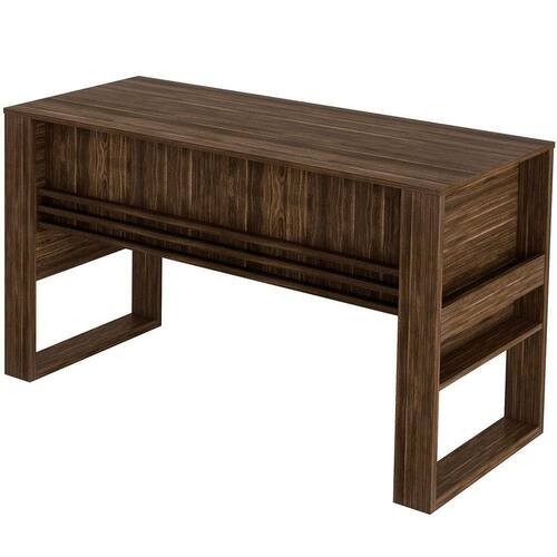 Mesa Para Escritório Escrivaninha Detalhe Ripado Nogal A Mesa para Escritório Escrivaninha com Detalhe Ripado oferece um visual sofisticado e contemporâneo para qualquer ambiente. Seu acabamento em BP e os detalhes em ripado conferem charme, elegância e um toque de modernidade ao seu escritório ou home office. Dimensões da Mesa para Escritório Escrivaninha Detalhe Ripado: - Altura: 74,5 cm - Largura: 127 cm - Profundidade: 60 cm