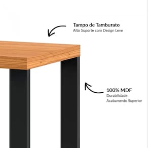 Características: Estrutura 100% MDF Acabamento em Pintura UV Tampo Leve e Resistente Estilo Industrial Sapatas Plásticas