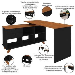 Com design em L, essa escrivaninha oferece um amplo tampo para trabalhar, estudar ou criar, enquanto o balcão acoplado proporciona ainda mais espaço para seus projetos. Com nichos organizadores e gavetas, você mantém tudo em ordem - desde materiais de trabalho até livros e itens decorativos. Além disso, é uma mesa em L muito versátil, pois é ideal para home office, escritório ou área de estudos, ou seja, essa peça une funcionalidade e estilo em um só lugar. Adicione ao seu carrinho e aproveite.