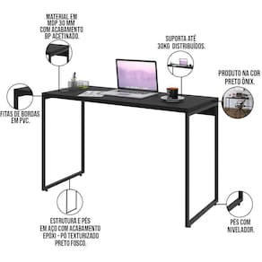 Com a Mesa Para Escritório e Home Office Industrial Aspen 120 cm C01 Onix - Lyam Decor, o conceito industrial ficará evidente no seu ambiente, tornando o mesmo muito mais moderno, sofisticado e organizado. Uma característica muito forte dos móveis industriais é a união do tubular de estrutura exposta com a madeira, que dão todo o charme para agregar no estilo que está entre os mais buscados no ramo de arquitetura e decoração.