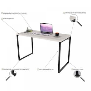 A linha Kuadra tem seu design com inspiração no estilo industrial, que remete muito a decoração utilizada nos lofts das grandes metrópoles nos anos 60 e 70. Harmonizando o metal e os tons de madeira, foram projetados móveis versáteis e com estilo, que podem compor ambientes flexíveis cheios de personalidade, perfeitos para você decorar sua casa ou seu trabalho, tendo um resultado que caminha do estilo rústico ao moderno. Suas estruturas são fabricadas em aço, com soldas suavizadas e pintura texturizada epóxi-pó. Conta com pés niveladores de altura e parafusos na Cr preta. Para os tampos são utilizados MDP-BP acetinado com fitas de borda em PVC, dando uma maior durabilidade ao seu móvel. A mesa KUME120 tem montagem simples e versátil, podendo ser utilizado em diversas composições com outros móveis, sendo perfeita para fazer parte do seu escritório ou sala. Possui Suporte para Teclado: Não Possui Passa Cabos: Não Acabamento: BP Acabamento dos Pés: Pintura Altura: 75 cm Altura dos Pés: 72 cm calculo: unidade Complexidade da Montagem: Baixa: pode ser montado por uma pessoa sozinha Cr: Snow Cr: Snow Cr do Produto: Snow Cr Interna: Snow Escala de Brilho: Fosco Estilo: Industrial Formato: Retangular Gaveta com Chave: Não Itens Inclusos: 1 Mesa Itens Inclusos: 1 Mesa Largura: 120 cm Linha ou Coleção: Kuadra Manual de Montagem e Instalação: https://cdn2.madeiramadeira.com.br/atributo/compace/391942-mesa-kuadra-manual-web.pdf Material dos Pés: Aço Material Principal: MDP Necessita Montagem: Sim Origem do Produto: Nacional Pés Reguláveis: Não Peso: 13,7 kg Possui Gavetas: Não Possui Pés: 02 Possui Porta Objetos: Não Possui Portas: Não Possui Prateleiras: Não Possui Rodízio: Não Possui suporte para CPU: Não Profundidade: 60 cm Recomendações de Uso, Manutenção e Limpeza: Para a limpeza, utilize flanela seca ou pano macio levemente umedecido em água. Utilize um pano seco em seguida. Evite contato com produtos químicos (solventes, thinner, acetona, etc) e não utilize nenhum tipo de esponja de aço. Sapatas Niveladoras: Sim Sistema de Montagem: Parafusos status-cadastro: Aprovado Suporta Até (kg): 30 kg Tamanho:
