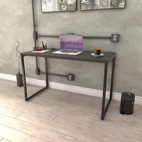 A linha Kuadra tem seu design com inspiração no estilo industrial, que remete muito a decoração utilizada nos lofts das grandes metrópoles nos anos 60 e 70. Harmonizando o metal e os tons de madeira, foram projetados móveis versáteis e com estilo, que podem compor ambientes flexíveis cheios de personalidade, perfeitos para você decorar sua casa ou seu trabalho, tendo um resultado que caminha do estilo rústico ao moderno. Suas estruturas são fabricadas em aço, com soldas suavizadas e pintura texturizada epóxi-pó. Conta com pés niveladores de altura e parafusos na Cr preta. Para os tampos são utilizados MDP-BP acetinado com fitas de borda em PVC, dando uma maior durabilidade ao seu móvel. A mesa KUME120 tem montagem simples e versátil, podendo ser utilizado em diversas composições com outros móveis, sendo perfeita para fazer parte do seu escritório ou sala. Possui Suporte para Teclado: Não Possui Passa Cabos: Não Acabamento: BP Acabamento dos Pés: Pintura Altura: 75 cm Altura dos Pés: 72 cm calculo: unidade Complexidade da Montagem: Baixa: pode ser montado por uma pessoa sozinha Cr: Preto Onix Cr: Preto Onix Cr do Produto: Preto Onix Cr Interna: Preto Onix Escala de Brilho: Fosco Estilo: Industrial Formato: Retangular Gaveta com Chave: Não Itens Inclusos: 1 Mesa Itens Inclusos: 1 Mesa Largura: 120 cm Linha ou Coleção: Kuadra Manual de Montagem e Instalação: https://cdn2.madeiramadeira.com.br/atributo/compace/391939-mesa-kuadra-manual-web.pdf Material dos Pés: Aço Material Principal: MDP Necessita Montagem: Sim Origem do Produto: Nacional Pés Reguláveis: Não Peso: 13,7 kg Possui Gavetas: Não Possui Pés: 02 Possui Porta Objetos: Não Possui Portas: Não Possui Prateleiras: Não Possui Rodízio: Não Possui suporte para CPU: Não Profundidade: 60 cm Recomendações de Uso, Manutenção e Limpeza: Para a limpeza, utilize flanela seca ou pano macio levemente umedecido em água. Utilize um pano seco em seguida. Evite contato com produtos químicos (solventes, thinner, acetona, etc) e não utilize nenhum tipo de esponja de aço. Sapatas Niveladoras: Sim Sistema de Montagem: Parafusos status-cadastro: Aprovado Suporta Até (kg): 30 kg Tamanho: