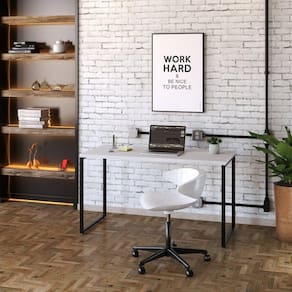 A linha Kuadra tem seu design com inspiração no estilo industrial, que remete muito a decoração utilizada nos lofts das grandes metrópoles nos anos 60 e 70. Harmonizando o metal e os tons de madeira, foram projetados móveis versáteis e com estilo, que podem compor ambientes flexíveis cheios de personalidade, perfeitos para você decorar sua casa ou seu trabalho, tendo um resultado que caminha do estilo rústico ao moderno. Suas estruturas são fabricadas em aço, com soldas suavizadas e pintura texturizada epóxi-pó. Conta com pés niveladores de altura e parafusos na cor preta. Para os tampos são utilizados MDP-BP acetinado com fitas de borda em PVC, dando uma maior durabilidade ao seu móvel. A mesa KUME135 tem montagem simples e versátil, podendo ser utilizado em diversas composições Acabamento dos Pés: Pintura Ambiente Principal: Escritório Complexidade da Montagem: Média: pode ser montado por mais de uma pessoa e/ou necessite de maior conhecimento para montagem Cor: Branco Chess Cor da Base: Preto Cor do Produto: Branco Chess Cor do Tampo: Branco Cor Interna: Branco Chess Escala de Brilho: Fosco Espessura do Tampo: 30 Formato: Retangular Itens Inclusos: 1 Escrivaninha, Kit Ferragens e Manual de Montagem Linha ou Coleção: Kuadra Manual de Montagem e Instalação: https://cdn2.madeiramadeira.com.br/atributo/compace-dalex/1263253-manual-novo-mesa-kuadra.pdf Material dos Pés: Aço Material Principal: MDP Necessita Montagem: Sim Origem do Produto: Nacional Pés com Regulagem de Altura: Sim Pés Reguláveis: Sim Peso: 13.906 Possui Passa Cabos: Não Possui Portas: Não Possui Prateleiras: Não Possui suporte para CPU: Não Possui Suporte para Teclado: Não Recomendações de Uso, Manutenção e Limpeza: Para a limpeza, utilize flanela seca ou pano macio levemente umedecido em água. Utilize um pano seco em seguida. Evite contato com produtos químicos (solventes, thinner, acetona, etc) e não utilize nenhum tipo de esponja de aço. Sapatas Niveladoras: Sim Sistema de Montagem: Parafusos e sapatas reguláveis Suporta Até (kg): 30