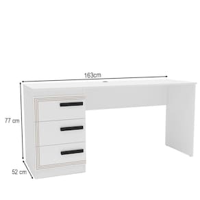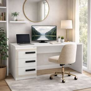 O(a) Mesa para Escritório Valência 3 Gavetas Branco - Politorno é produzido em MDP na escala de brilho Semi-Fosco, e possui um grau de dificuldade de montagem: Médio.