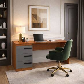 O(a) Mesa para Escritório Valência 3 Gavetas Cinza/Freijó - Politorno é produzido em MDP na escala de brilho Semi-Fosco, e possui um grau de dificuldade de montagem: Médio.