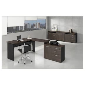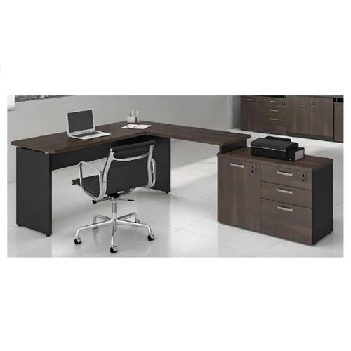 Mesa em L Web30 1,35 X 2,32 30mm (engrossurado) com Armário 1 Porta, 3 Gavetas.