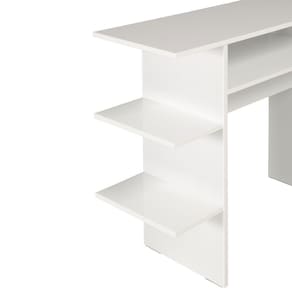 Mesa para manicure prateleira de madeira apoio decorar salão A escrivaninha de apoio é o móvel perfeito para o seu lar totalmente atemporal e sofisticado garantindo uma elegância ao seu ambiente. Utilize na sala de estar dando um toque tradicional com sofisticação, mas se optar por uma decoração minimalista e moderna é simples, o móvel ficará incrível no hall de entrada ou no quarto substituindo as tradicionais mesas de cabeceira, assim como em seu trabalho para apoiar tarefas e utensílios. Você pode incrementar sua escrivaninha com plantas, vaso de suculentas, um livro, notebook ou até mesmo uma vela aromática. Gostou das ideias Monte seu cantinho e compartilhe conosco sua decoração. Descritivo comprimento - 710 mm altura - 765 mm largura - 300 mm suporte apoio lateral - 300 x 157 mm suporte central - 514 x 300 mm tampo em mdf com espessura de 15mm Disponível na cor branca Marca: Colomi Ean: 0618341486560