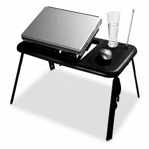 Mesa Para Notebook Suporte Com 2 Coolers E Sensor Touch TMT Mesa Para Notebook Suporte Com 2 Coolers E Sensor Touch Mouse Descrição: Com a mesa para notebook você terá muito mais conforto na hora de trabalhar. Além de respeitar o seu corpo, ela protege o seu equipamento, pois o mesmo fica apoiado em uma superfície com dois ventiladores. Este modelo pode ser utilizado tanto em cima de uma mesa de trabalho, como na cama, no sofá e até mesmo no aeroporto. - com seu design prático e exclusivo você pode levá-la junto com seu notebook para onde quiser, basta dobrá-la e colocá-la na sua maleta ou mochila. Uma novidade que vai te proporcionar mais comodidade e praticidade em seu dia-a-dia. - Tem regulagens de altura e inclinação - possui 02 coolers - possui local para utilizar mouse externo - porta copos e porta caneta - feita em plástico extra resistente - compacta e leve - Alimentação dos cooler é via cabo USB Incluso - Dimensões: 55,5 x 31,5