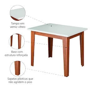 MEDIDAS: [ A ] = 80 cm [ L ] = 120 cm [ P ] = 90 cm PESO: 22,5 Kg PESO SUPORTADO: 40 Kg (distribuídos) MODELO: Mesa para Sala de Jantar 1,20m Miami MARCA: Dobuê COR: Estrutura: Madeirado / Tampo: Off White ESTRUTURA: MDP/MDF ACABAMENTO: Verniz vítreo MATERIAL DO TAMPO: MDF DIFERENCIAL: Material de alta resistência. SISTEMA DE MONTAGEM: Parafusos ITENS INCLUSOS: 1 Mesa, 1 manual de montagem e 1 kit parafusos INSTRUÇÕES E CUIDADOS: Limpar com pano levemente umedecido com água, não utilizar produtos abrasivos GARANTIA: 3 meses pelo fabricante.