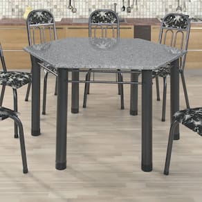 Esta mesa sextavada é uma peça única que combina elegância e originalidade em um design contemporâneo. Seu tampo em granito ocre exibe uma tonalidade quente e texturizada, proporcionando um visual acolhedor e sofisticado, com a durabilidade característica da pedra natural. A base em aço, de linhas simples e robustas, adiciona um toque moderno e industrial, garantindo estabilidade e leveza ao mesmo tempo. Ideal para salas de jantar ou ambientes contemporâneos, esta mesa é perfeita para quem busca uma peça de destaque que une beleza, funcionalidade e estilo.