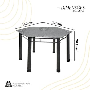 Mesa para Sala de Jantar 140x121cm Base 06 Granito Ocre / Prata Martelado