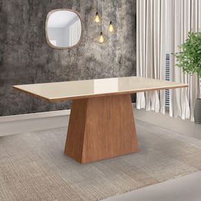 Mesas são indispensáveis para o funcionamento da casa e é no cômodo de confraternização que elas ganham protagonismo. Composto por peças de muito charme, a mesa Ref:140 orna o uso desse móvel importante com 4 e 6 cadeiras para garantir uma usabilidade plena para o seu dia a dia. Ideal para cozinhas e salas de jantar, o kit oferece amplo espaço para que você possa dispor pratos, copos, talheres e até uma travessa com o quitute da vez, enquanto acomoda os convidados com aconchego e receptividade. Ah, para completar, é só combiná-la com o restante da mobília de sua preferência e criar o ambiente intimista perfeito para a sua rotina ou reuniões entre amigos. Acabamento: Pintura UV Acabamento da Base: Pintura UV Acabamento do Tampo: Pintura UV Ambiente Principal: Sala de Jantar Complexidade da Montagem: Média: pode ser montado por mais de uma pessoa e/ou necessite de maior conhecimento para montagem Cor: Canela/Off White Cor do Produto: Canela/Off White Design da Base: Trapézio Dobrável: Não Escala de Brilho: Semi-Brilho Espessura do Tampo: 29 Extensível: Não Informações Complementares: Itens Inclusos: 1 Mesa, Kit Ferragens e Manual de Montagem Largura Extendida: Largura Quando Extendida: Linha ou Coleção: 2022 Manual de Especificação Técnica: https://cdn2.madeiramadeira.com.br/atributo/mOveis-zamarchi/1006578-manual-montagem-140.pdf Manual de Montagem e Instalação: https://cdn2.madeiramadeira.com.br/atributo/mOveis-zamarchi/1006602-manual-montagem-140.pdf Material da Base: MDP Material do Tampo: Vidro/MDF Material Principal: MDP Medida da Base (A x L x P): 75x67x41cm Medida do Suporte Giratório (L x C x E): Medida do Tampo (L x C x E): 160x90x2,9cm Necessita Montagem: Sim Origem do Produto: Nacional Peso: 46 Possui Base: Sim Possui Rodízio: Não Possui Suporte Giratório: Não Recomendações de Uso, Manutenção e Limpeza: Limpeza com pano macio e levemente umedecido Sistema de Montagem: Parafusos, Cantoneiras, Tapa Furo e Cola Suporta Até (kg): 100 Tipo de Madeira Maciça: Tipo de Madeira Maciça da Base: Tipo de Madeira Maciça do Tampo: undefined: