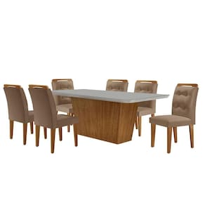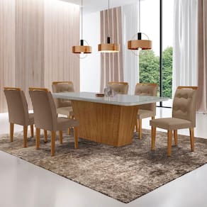 Mesa Para Sala De Jantar Aida 180cm Mdf E 6 Cadeiras Moderna Vel. Capuccino Off White Imbuia Com um design sofisticado e contemporaneo, a Sala de Jantar Aida com as Cadeiras Carol e a escolha perfeita para elevar qualquer ambiente. Produzido em MDF, este conjunto combina elegancia e funcionalidade. As Cadeiras, com assento e encostos estofados, sao enriquecidas com detalhes em botoes no encosto, conferindo um charme refinado e classico. A mesa destaca-se pela base robusta e linhas retas, com um acabamento impecavel que completa o visual moderno e sofisticado. Transforme seu espaco com a sala de jantar Aida e adicione um toque de classe ao seu dia a dia Dimensoes da Mesa: Altura: 80cm Largura: 180cm Profundidade: 90cm