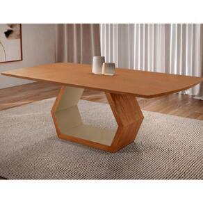 A Mesa de Jantar Ane e uma peca que une estilo moderno e sofisticacao em uma combinacao perfeita. Sua estrutura produzida em madeira apresenta um design com uma base geometrica que e o verdadeiro destaque desta peca. Esta base nao apenas adiciona um toque contemporaneo e elegante a mesa, mas tambem demonstra uma estetica ousada e unica.