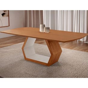 A Mesa de Jantar Ane e uma peca que une estilo moderno e sofisticacao em uma combinacao perfeita. Sua estrutura produzida em madeira apresenta um design com uma base geometrica que e o verdadeiro destaque desta peca. Esta base nao apenas adiciona um toque contemporaneo e elegante a mesa, mas tambem demonstra uma estetica ousada e unica.