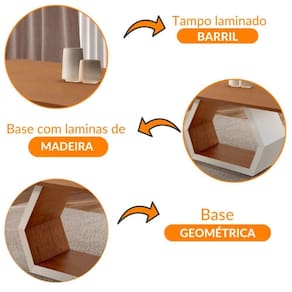Caracteristicas: Tampo em formato barril Base da mesa entregue montada Material da Estrutura: Madeira Tipo de Acabamento: Pintura Uv Possui Vidro: Nao
