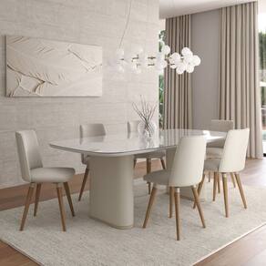 Um toque de requinte para transformar cada momento em algo memorável! Acabamento: Pintura UV Ambiente Principal: Sala de Jantar codigo_ean: 7900288118820 Complexidade da Montagem: Média: pode ser montado por mais de uma pessoa e/ou necessite de maior conhecimento para montagem Cor: Off White/Champanhe Cor do Produto: Off White/Champanhe Dobrável: Não Escala de Brilho: Fosco Extensível: Não Itens Inclusos: 1 Mesa, Manual de Montagem e Kit Ferragens Linha ou Coleção: Lintz Manual de Montagem e Instalação: https://product-hub-prd.madeiramadeira.com.br/983802/documents/2c6f40ac-6bd3-4fb8-9d8e-90ad0a67b9ee2842410505217443026918035.pdf Marca: Província Material da Base: MDF Material do Tampo: Vidro/MDF Material Principal: MDF Necessita Montagem: Sim Origem do Produto: Nacional Peso: 75,92 kg Possui Rodízio: Não Possui Vidro: Sim Recomendações de Uso, Manutenção e Limpeza: Limpe a superfície regularmente com um espanador, aspirador de pó suave ou um pano macio levemente umedecido com água e sabão neutro. Finalize com um pano seco. Evite o uso de produtos químicos, abrasivos, solventes, esponjas de aço ou produtos de limpeza doméstica, pois podem comprometer o acabamento. Mantenha o móvel no chão, protegido da umidade excessiva, luz solar direta e fontes de calor. Ao movimentar a peça, levante-a cuidadosamente para evitar danos aos pés. Não arraste, nem se apoie ou escale o móvel. Sistema de Montagem: Você vai precisar de uma Chave Philips e parafusadeira. O Kit de Acessórios e Manual de Montagem, acompanham à peça. Suporta Até (kg): 30 kg