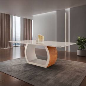 A mesa de jantar Ellis é uma obra-prima de design moderno, uma peça que captura instantaneamente a atenção com sua presença imponente. Feita com madeira de alta qualidade, ela é mais do que um simples móvel; é uma expressão de estilo e sofisticação. Seu design arrojado e contemporâneo é evidente desde o primeiro olhar, destacando-se por uma base com detalhes curvados que conferem um charme único e uma elegância inigualável a qualquer espaço.