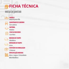 Mesa para Sala de Jantar Ellis 180cm Laminada em Madeira com Vidro Moderna Mobília