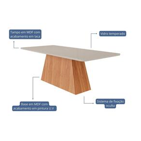 Mesa Helena de 2,10cm x 1,0cm. Que tal reunir a sua família para um jantar? Nesse momento a Cimol vai está presente, proporcionando situações agradáveis e descontraídas! A mesa Helena possui uma base em formato triangular, seu tampo é em mdf/vidro com bordas chanfradas e acabamento em laca. Com um design inovador, a Cimol busca sempre um estilo moderno para o seu ambiente! Acabamento: Pintura UV Acabamento do Tampo: Pintura UV Ambiente Principal: Sala de Jantar Atóxico: Sim codigo_ean: 7900288037893 Complexidade da Montagem: Média: pode ser montado por mais de uma pessoa e/ou necessite de maior conhecimento para montagem Cor: Cinamomo/ Offwhite Cor do Produto: Cinamomo/ Offwhite Design da Base: Pirâmide Escala de Brilho: Fosco Espessura do Tampo: 29 mm Extensível: Não Itens Inclusos: 1 Mesa e 1 Manual de Montagem Manual de Montagem e Instalação: https://product-hub-prd.madeiramadeira.com.br/972331/documents/28710155-d340-4285-9e2e-8da3425483712593445503517345515250595.pdf Marca: Cimol Material da Base: MDF Material do Tampo: Vidro/MDF Material Principal: MDF Necessita Montagem: Sim Origem do Produto: Nacional Peso: 76,55 kg Possui Rodízio: Não Possui Vidro: Sim Recomendações de Uso, Manutenção e Limpeza: Para manter seu móvel novo por muito mais tempo, evite locais úmidos, mantenha-o distante de líquidos. Para limpá-lo com segurança utilize uma flanela seca sem produtos abrasivos Sistema de Montagem: Parafusos, porcas e cavilhas. Suporta Até (kg): 50 kg