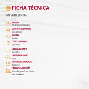 Dimensoes da Mesa: Altura: 80 cm Largura: 180 cm Profundidade: 90 cm