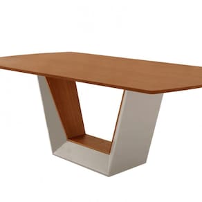Mesa Para Sala De Jantar Rubi 180cm Moderna Mobília Off White Com Off White/cinamomo Imbuia Mesa para Sala de Jantar Rubi 180cm Madeira Tampo Barril Laminado Moderna Mobilia A mesa de jantar Rubi e uma verdadeira joia em qualquer ambiente. Produzida com madeira de qualidade excepcional, ela exala sofisticacao e elegancia desde o iro olhar. Seu design diferenciado e um convite a contemplacao, com uma base geometrica que mescla linhas modernas e formas distintivas. O destaque da mesa Rubi e, sem duvida, sua base unica, que adiciona um toque de modernidade e idade ao espaco. Com suas formas geometricas meticulosamente trabalhadas, ela nao apenas chama a atencao, mas tambem otimiza o ambiente, criando uma sensacao de equilibrio e harmonia. Seja em uma sala de jantar espacosa ou em um ambiente mais intimista, a mesa Rubi se adapta com facilidade, transformando cada refeicao em uma experiencia memoravel. Sua qualidade superior garante durabilidade e resistencia, enquanto seu design excepcional cria um ambiente acolhedor e convidativo.