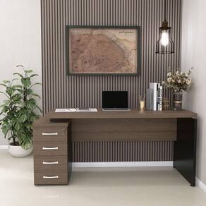 Mesa Pé Gaveteiro Com 4 Gavetas 164/70cm Pe40 Preto/walnut Mesa pé gaveteiro com 4 gavetas 164/70cm PE40 Preto/Walnut - Descrição: A Mesa Pé Gaveteiro da Linha PE40 combina praticidade e organização em um único móvel. Com 4 gavetas funcionais, sendo uma suspensa para fácil acesso, oferece o espaço ideal para armazenar documentos, materiais de escritório e objetos pessoais com . Seu design moderno e robusto garante durabilidade, enquanto a estrutura da linha PE40 proporciona estabilidade e acabamento de qualidade.