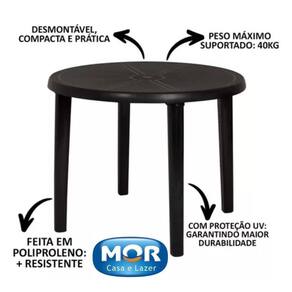 A Mesa Plástica Redonda Desmontável Mor veio para facilitar seus momentos de lazer. Produzida nacionalmente, ela é confeccionada em polipropileno 100% virgem com proteção UV, garantindo maior durabilidade, e conta com excelente acabamento.