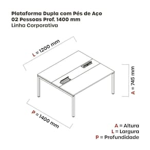 Mesa Plataforma Dupla com Pé de Aço para Coworking 120X140/2P PDC12/14/2P Branco/Preto