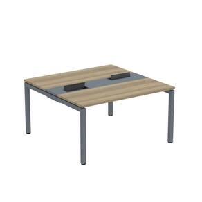 Mesa Plataforma Dupla com Pé de Aço para Coworking 140X140/2P PDC14/14/2P Noce Naturalle/Grafito - Marrom