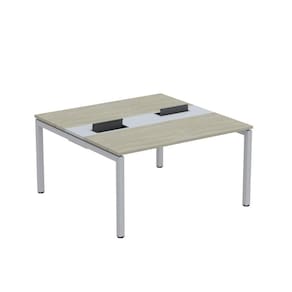 Mesa Plataforma Dupla com Pé de Aço para Coworking 140X140/2P PDC14/14/2P Nogueira Casablanca/Cinza - Bege