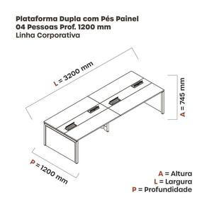 Mesa Plataforma Dupla para 4 Lugares para Coworking 160x120/4p Branco/Grafito