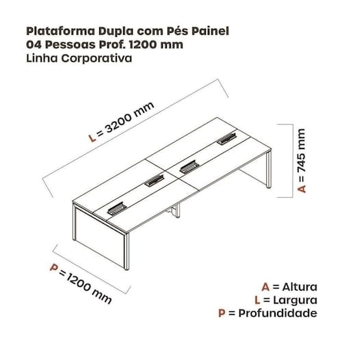 A Mesa Plataforma Para Coworking para 4 pessoas é uma ótima opção para quem busca um ambiente de trabalho moderno, funcional e confortável. Essa mesa possui uma estrutura de aço resistente e elegante, com espaço para a instalação de tomadas e conectores. Além disso, é permitindo adequar com mais plataformas para criar uma interação dinâmica e colaborativa, transfonando seu espaço de trabalho produtivo, criativo e agradável. Produto Montado: Sim Acabamento dos Pés: Polipropileno Acompanha Manual de Instalação: Sim Ambiente Principal: Escritório codigo_ean: 7909903585429 Complexidade da Montagem: Alta: deve ser montado por um montador especializado Cor: Walnut/Cinza Cor do Produto: Walnut/Cinza Cor Interna: Walnut/Cinza Escala de Brilho: Semi-Fosco Espessura do Tampo: 25 mm Itens Inclusos: 1 Mesa plataforma para 4 lugares Linha ou Coleção: Linha Corporativa Manual de Montagem e Instalação: https://product-hub-prd.madeiramadeira.com.br/893747/documents/8f55406a-6261-42dc-bad3-d9bc48d6281020Dupla200420PC3A920Painel.pdf Material dos Pés: Polipropileno Material Principal: MDP Necessita Montagem: Sim Origem do Produto: Nacional Pés com Regulagem de Altura: Sim Pés Reguláveis: Sim Peso: 95,549 kg Recomendações de Uso, Manutenção e Limpeza: Utilize pano úmido com para limpeza Sapatas Niveladoras: Sim Sistema de Montagem: Pasrafuso