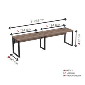 Características Gerais do Produto: - Material: Eucalipito - Material da Estrutura: MDP - Altura: 75 cm - Largura: 268 cm - Peso: 50,077 kg - Profundidade: 60 cm