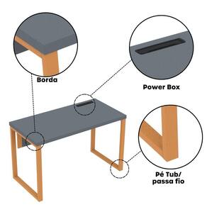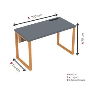 A mesa oferece amplo espaço para computadores, materiais de trabalho e reuniões rápidas. Seu design funcional permite integração com cadeiras e acessórios de escritório, promovendo um ambiente produtivo e organizado.