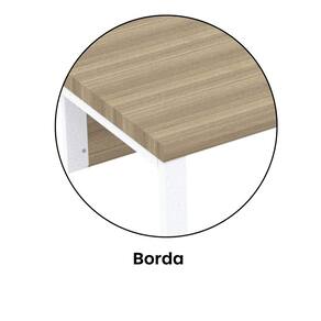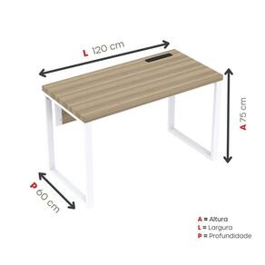 A mesa oferece amplo espaço para computadores, materiais de trabalho e reuniões rápidas. Seu design funcional permite integração com cadeiras e acessórios de escritório, promovendo um ambiente produtivo e organizado.