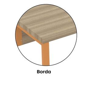 A mesa oferece amplo espaço para computadores, materiais de trabalho e reuniões rápidas. Seu design funcional permite integração com cadeiras e acessórios de escritório, promovendo um ambiente produtivo e organizado.