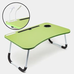 Mesa Portátil Dobrável Multiuso com Suporte, USB, Ventilador e Luminária LED ? 60x40cm
