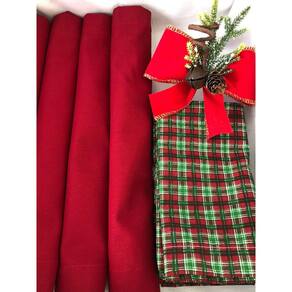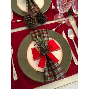 Mesa Posta 6Lugares Jogo Americano Festa Decoração Natal Estampas.: Jogo Americano Vermelho + Guardanapo Xadrez +Porta Guardanapo Vermelho Sino Kit Mesa Posta
