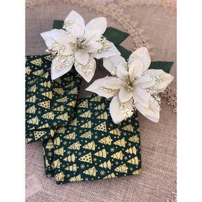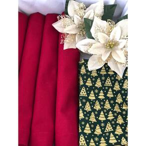 Mesa Posta 6Lugares Jogo Americano Festa Decoração Natal Estampas.: Jogo Americano Vermelho + Guardanapo Verde Arvore +Porta Guardanapo Bico Dourado Kit Mesa Posta