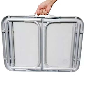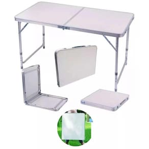 4. Uso Multiuso e Versátil: Ideal para várias ocasiões, a Mesa Prática Dupla se adapta tanto a ambientes internos quanto externos. Pode ser usada em acampamentos, festas, feiras, trabalhos temporários e até mesmo como uma mesa extra para o dia a dia.