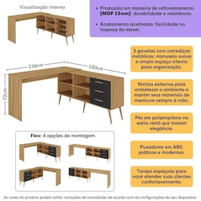 - 4 opções de montagem: formato reto ou em L (canto), com a mesa à esquerda ou à direita do balcão.