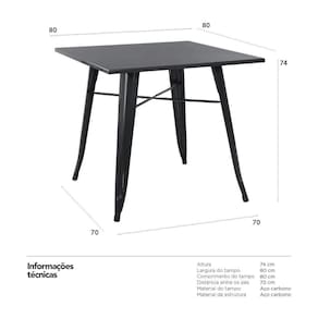 Fabricante: Mobili | RBN: 17100663011 | Cor: Multicolorido | Cômodo indicado: Cozinhas | Tonalidade: Multicolorido | Produto: Mesa | Tipo: Centro | Material do tampo: Aço carbono | Material da base: Aço carbono | Altura: 74 cm | Comprimento x Largura: 80 x 80 cm | Garantia do fabricante: 3 meses | Largura: 80 cm | Peso do produto: 8 kg